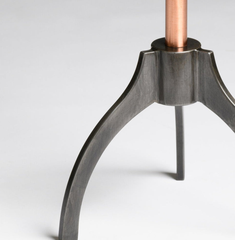 Shown: Bourbon Cocktail Table base in solid copper and blued steel.
