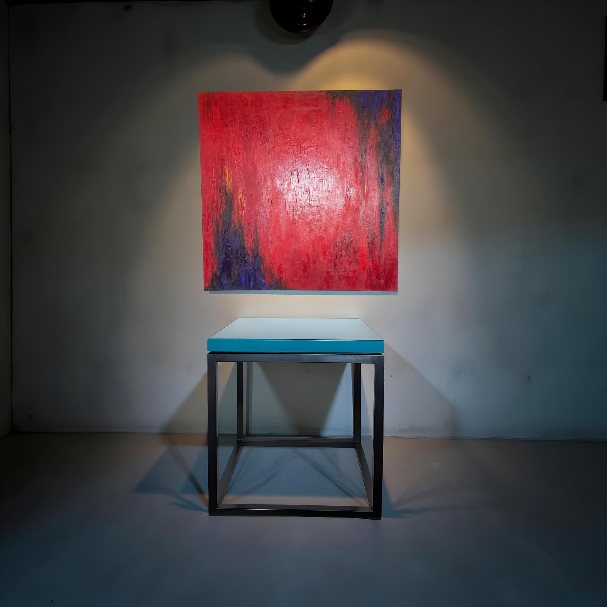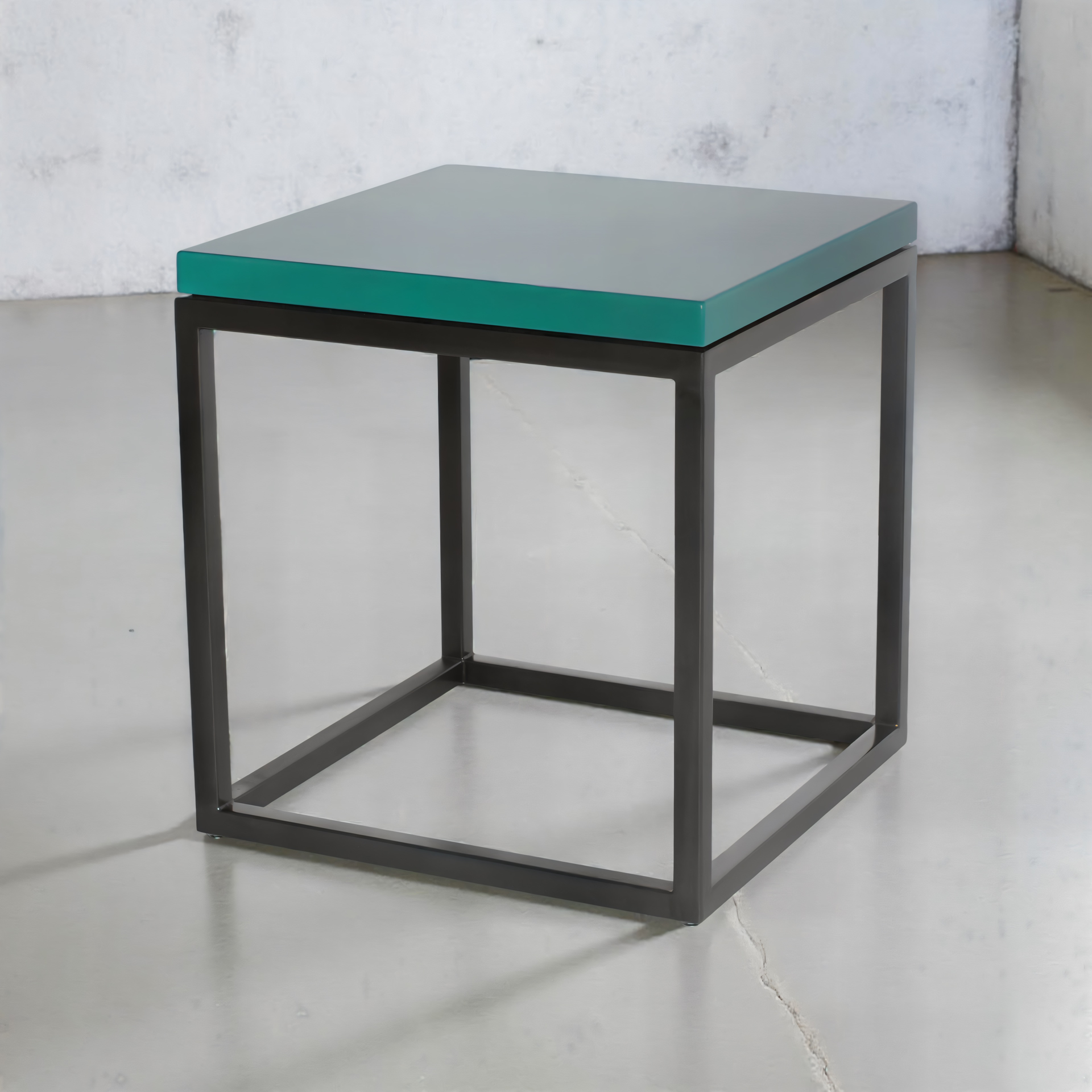 Each Accent Table in the HUE Collection is handcrafted in the United States in small batches using time-honored techniques and premium materials. Its minimalist frame is built from blued steel, offering clean lines, strong geometry, and a striking contrast to the rich porcelain enamel surface. Through careful bluing, oiling, and waxing, the steel takes on a deep patina and soft luster, inviting touch and revealing the warmth and character of true craftsmanship.
