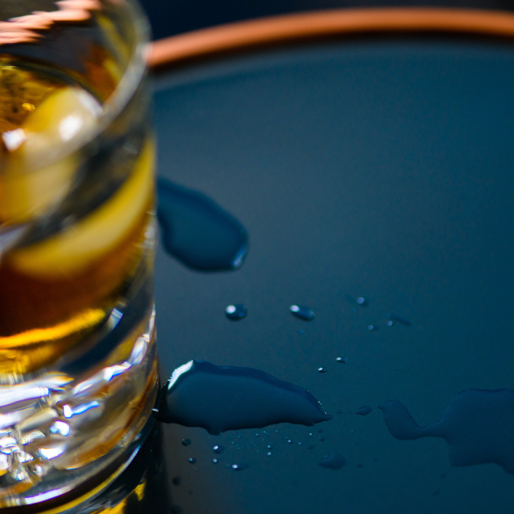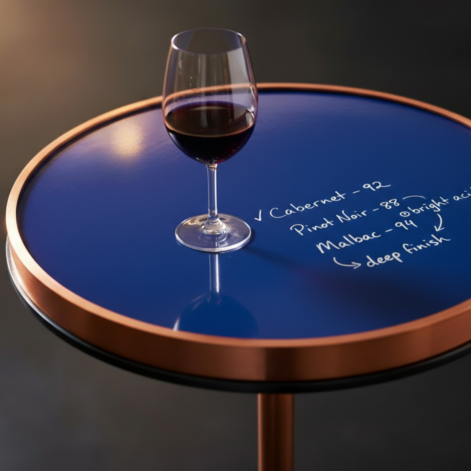 Resists ghosting, stains, and water. No coasters needed. Built for real use in creative, social, or reflective spaces